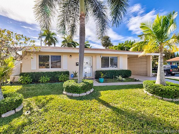This Gorgeous 2 bedroom, 1 bath single family home with a carport is situated on a corner lot that features a tropical paradise as your back yard! This charming home has an open floor plan with tile floors, updated bathroom, custom closets, crown molding, impact windows in front of home, large florida room, covered patio, and a Tiki Hut! The AC unit replaced in 2019, Water Heater in 2017, Washer/Dryer in 2018. The owner is in process of putting on a new shingle roof & flat roof with permit. This amazing community has a low HOA fee of $113/month which includes lawn care, exterior painting, community pool, clubhouse and access to the community golf course. The location is conveniently located in between I-95 and turnpike, and only 6 miles from the beach!