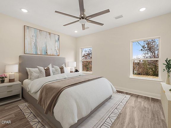 Improved price on this new construction home with numerous upgrades. What a perfect location as this house is in a deeded neighborhood located conveniently off Hwy 231 close to downtown restaurants and shops and 23rd street! This house is a short drive to Tyndall Air Force Base. This is a four bedroom, two bath, brick home with an open floorplan and an oversized covered back porch overlooking your fully sodded yard with an automatic sprinkler system. You will enjoy the privacy of your fenced backyard. As you drive up to the house you will find the wow factor. This craftsman exterior design of brick/hardy board has an inviting feel as you walk into the house with 9 ft ceilings, and custom light package. The kitchen is a chef's delight with custom cabinets, granite countertops, large island, and upgraded Samsung stainless steel appliances and the kitchen is open so you can enjoy guest and family relaxing in the living area. You will enjoy retreating in your master suite complete with a double vanity, garden tub with a separate shower and a large walk in closet. Call today to schedule your tour. All information contained herein is believed to be accurate and true however it is the responsibility of the buyer to verify all information.