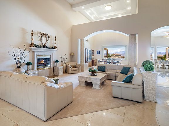 ONE OF A KIND CUSTOM MASTERPIECE W/ EXCEPTIONAL STRIP, GOLF & MOUNTAIN VIEWS. THIS UNIQUELY REMODELED SINGLE STORY ESTATE INCLUDES INDOOR/OUTDOOR LIVING W/ VANISHING PATIO DOORS & WET BAR. AN ENTERTAINERâEUR(tm)S DREAM HOME W/ PRONOUNCED FINISHES. SITUATED ON .52 ACRES IN A CUL-DE-SAC. EXQUISITE OPEN FLOOR PLAN W/ ORNATE PIVOT DOOR LEADING INTO A GRAND ENTRANCE W/ SOARING CEILINGS, STONE ACCENT WALLS, GALLERY SPACE, DISTINCTIVE FIREPLACE, FORMAL LIVING & DINING W/ OPULENT LIGHTING THROUGHOUT. EXPANSIVE CHEFâEUR(tm)S KITCHEN, GORGEOUS CUSTOM CABINETS, SYCAMORE ISLAND W/ VEGGIE SINK, COFFEE BAR & WALK- IN PANTRY. INCREDIBLE MASTER SUITE W/ POCKET DOORS/WALLS, FIRE PLACE, ELEGANT BATH & DRESSING AREA W/ EXCEPTIONAL VIEWS OF THE RESORT STYLE BACKYARD. THIS HOME HAS TWO ENSUITES, 2ND MASTER SUITE & DEN W/ 4 FULL BATHS. A TOTAL OF 6,402 SQFT W/EXTRAORDINARY COMFORT & DESIGN. ESCAPE IN YOUR PRIVATE OASIS W/ A DEEP COVERED PATIO, INFINITY EDGE POOL & SPA W/ FIRE FEATURES. THIS HOME IS A RARE OPPORTUNITY!