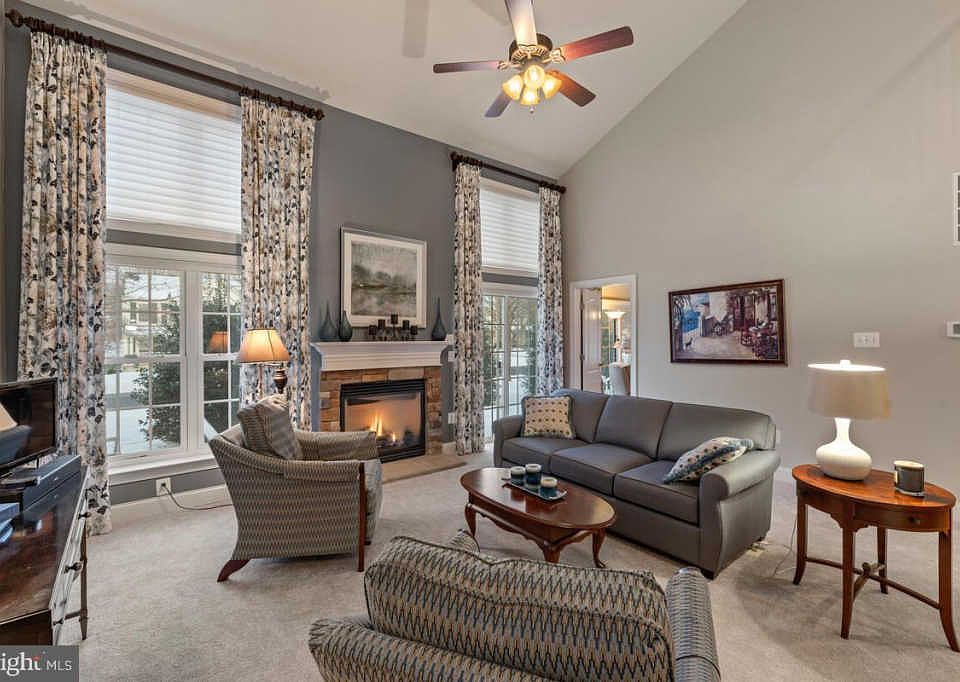 55 plus community..Lovely home is over 36 feet wide so the feel is very open with nice proportions for the rooms. You do NOT feel like it is a bowling alley!!!! The home is very well cared for and has new carpet on the main floor. To the left of the entrance is an office with plenty of sunshine. The living/dining kitchen area is open and has a dramatic two story living room with stunning two story windows and a stone fireplace. The owner's suite also has a vaulted ceiling, walk in closet, washer/dryer and a huge bath. The luxury bath features a larger shower that allows room for seating, double vanity, and a new chair height toilet. The upper level has a family room so big it could accommodate an area for exercise, another office, and a large screen TV area. The two additional bedroom and filled with possibilities and and have huge walk in closets. The basement has had the floor painted for a clean storage area. NOTICE: upper rear patio was sinking and removed...ready for your deck or steps.