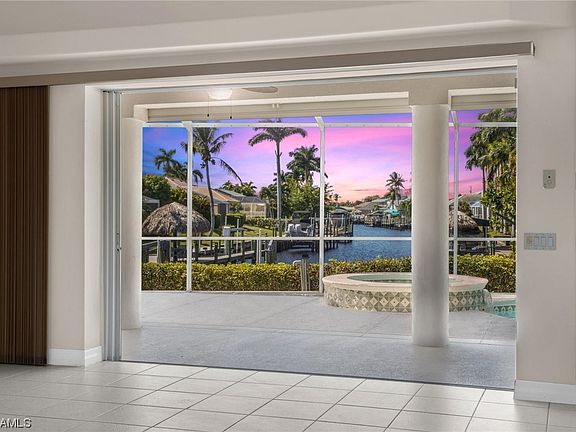 Welcome to your dream Florida home. This DIRECT access canal home has Western rear exposure, an open floor plan, 2022 tile roof and volume ceilings throughout. With 3 bedrooms, plus a den/office, and 2.5 baths this home offers lots of space for enjoying the Florida lifestyle. The primary bathroom offers 2 vanities, a separate bathtub and a walkthrough shower. The large kitchen includes lots of custom cabinet space and stainless steel appliances. Step outside through the pocket sliding doors to the large enclosed lanai space with brand new screening that has a pool with a brand new pump and a spa. Steps away is your own private dock with a 13.5 ton boat lift.