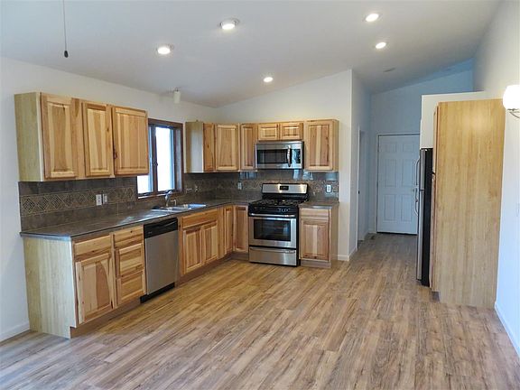 Spacious 5-bedroom, 4-bath home located in SE Minot. This home features a large living room w/bow window, open kitchen w/new hickory cabinets and appliances, adjacent dining area w/walk-out to deck, nice master bedroom with ¾ bath, and main floor laundry. The basement is finished with a large family room, 2-bedrooms, office, & bath. Plenty of room in the 3-stall garage.