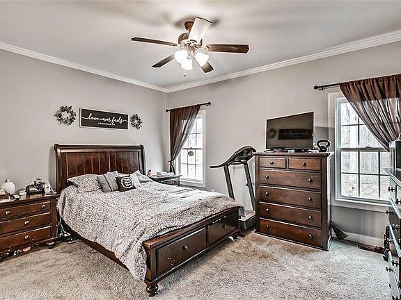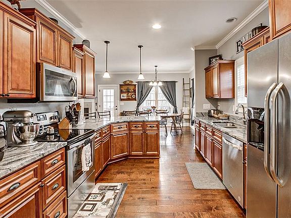 Beautiful home in Southwest area! Many custom features, 9' ceilings, hardwood floors, FP w/gas logs, nice open floor plan, great room open to beautiful kitchen w/custom cabinets, eat-at bar, pantry, stainless appliances remain (includes refrigerator). Spacious master suite w/walk-in closet, ceramic shower, soaker tub, double vanity w/granite counters. Upstairs w/huge bonus room, two bedrooms and nice bath w/granite counters. Nice deck, river rock patio w/fire pit. Newly fenced in back yard!