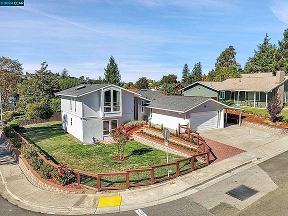 Exceptional, bright & airy, recently improved, well located & maintained home in the heart of Pinole Valley. Stylish Split-level floor plan with vaulted ceilings and exposed beams, featuring 4 bedrooms, 2.5 bathrooms, Storage room/closet. Finished 2-car garage. Upper level primary suite, sun-filled living room & 3 bedrooms on the lower level. Exterior with freshly neutral color paint. Expanded driveway parking. Updated kitchen with granite counter tops, eat-in area & formal dining with new life-warranty flooring. Newer 40-year roof, central heating furnace & AC. Energy efficient windows & tank-less water heater. In-compliance & certified sewer lateral. Extensive patio deck with custom pavers & lower level lawns to entertain your family & friend's gatherings with possibilities for an ADU. Close proximity to Hwy 80, Pinole Valley HS, shopping center, public swimming pool, parks, hiking trails & an array of public services. Buyers to verify all information.