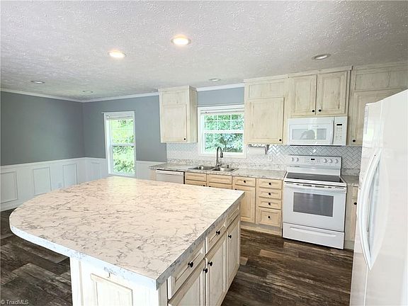 BACK ON THE MARKET NO FAULT OF THE SELLERS OR PROPERTY.Lower taxes, affordable and beautifully maintained 2021 doublewide offering an open,modern floor plan and numerous high-end upgrades.Interior features include an archway entry, smooth sheetrock walls, upgraded windows for enhanced light and efficiency, and custom trim and moldings throughout.The spacious kitchen is a highlight with a large island, custom cabinetry, and ample counter space—ideal for entertaining and everyday living. Bathrooms feature upgraded tiled showers and premium shower doors.The property includes a covered screened porch that provides comfortable outdoor living protected from insects, a large detached garage measuring 28' x 30' with ample room for vehicles, workshop space, or storage, and an additional shed for extra storage needs.The porch also benefits from upgraded railing for added durability and curb appeal.Built with energy efficiency in mind, this home delivers lower utility costs and improved comfort.