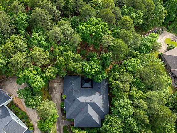 A diamond in the rough...Very RARE property! Located in Don Roberts School district, this one level hosts 1.2 wooded acres of private, serene setting - peaceful retreat. Beautiful hardwoods throughout, open floor plan, recessed lighting, 10' ceilings, natural light, interior recently painted. Updated chef's kitchen - gas cooktop, stainless appliances, breakfast bar, farm sink, durable solid surface counter tops. Shiplap wall in large den with built-ins and gas log fireplace. Vaulted master ceiling with cozy sitting area, jetted tub. Entertainers dream - covered patio and inviting gazebo to enjoy the nature preserve. Workshop area in basement. Extra large side load garage 22'x27'. Garage floor recently resealed. Roof & hot water heater replaced 2016. Sprinkler system.
