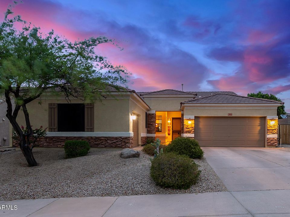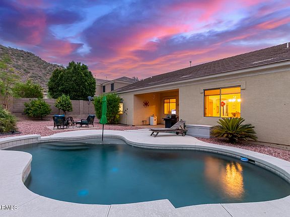 Beautiful single story with a sparkling blue pool perched at the base of Tramonto's Sonoran Foothills. Meticulously maintained home by original owner. Light, bright open floorpan with 10 foot ceilings. Well appointed kitchen with large oversized island, black granite, staggered spiced maple cabinets, copper colored faucets, easy to clean black appliances and pantry. Custom soothing paint, neutral tile throughout, upgraded berber carpet. Oversized backyard with sparkling blue pebble-tec pool, decorative glass hand-holds, extended patio and a Mountain View! New A/Cs! Newer Water heater. Very close to Tramonto's park with picnic area, pools, hot tub, sand volleyball, basketball, tennis and more. Easy highway access and close to shopping and dining. LOW HOA!