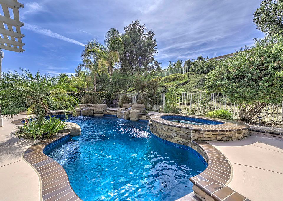 AWESOME UPGRADED POOL HOME!!! Downstairs bedroom/office, Super Family Room with Stacked Stone fireplace, Surround Sound & Ceiling Fan, 9ft ceiling. Large Family Kitchen w/ Granite Counters & Center Island, Loads of Cabinets w/ Beautiful Custom Designer Finish, Double oven, Gas cook top and Instant Hot Water! Custom Bolivian Rose Wood flooring on stairs and throughout 2nd level, Beveled & Stained Glass Windows, Chandeliers, Window Casings, Crown Moulding, Plantation Shutters, Decorative Moulding, Vaulted Ceilings in Living and Dining rooms. All Bedrooms have Ceilings Fans, Master Suite has Vaulted Ceilings, Black-out Shades, Large Walk-in His & Hers Closet. Master Bath w/ Dual Sinks, Separate Shower & Lg. Soaking Tub & Beautiful Chandelier. Awesome Entertainers Yard, Custom Salt Water Pool with Stacked Stone & Tranquil Waterfalls! Umbrella Stubs in Pool & Spa!! Extra Long Multi Level Pergola Patio Cover with outdoor Speakers, View of Mountains & Greenery, Gated Dog Run. Storage Cabinets and workbench in Garage, Upgraded 200amp box, Whole House Quiet Cool Fan recently installed, Completely new AC unit, New ducting and vents, New Variable Speed Pool Pump, LED lighting throughout, Solar Installed w/ Extra Panels!! HOA is only $25 month!