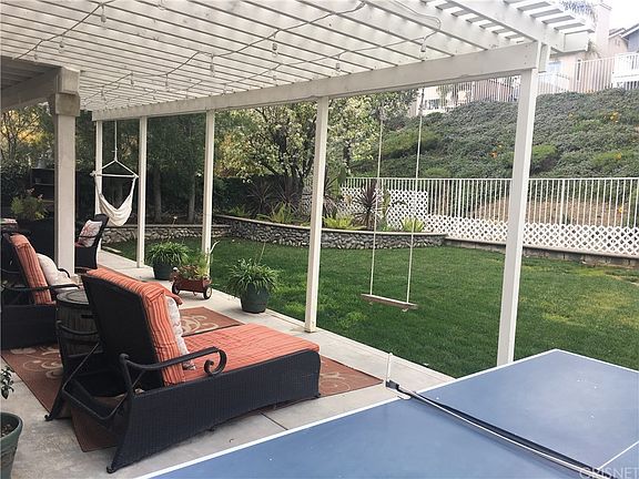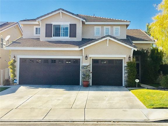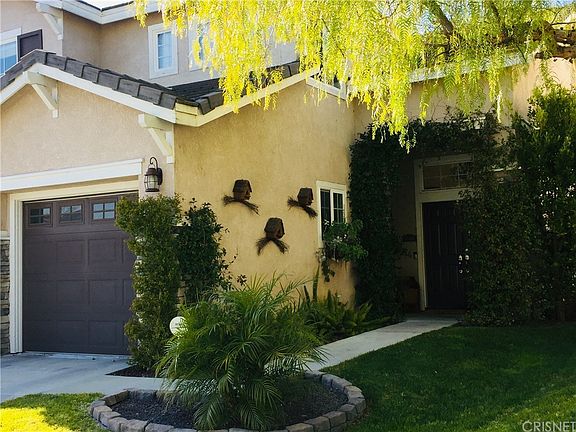 Charming PAID SOLAR Stevenson Ranch home with award-winning Elementary school close by. This 2 story home has 5 bedrooms 4 baths plus a 3 car garage with TONS of overhead storage. Downstairs you will find the vaulted ceilings in the living room that adds to the amazing open light and bright feel and also has a separate dinning room for your more formal gatherings. This kitchen has beautiful granite counter-tops with a large eat at island that has the open layout to the family room with lovely wood burning fireplace for those cooler evenings or just for the cozy feel when your spending time with your family. The laundry area is in a separate room with sink and a downstairs bedroom is extra convenient for guests or your home office. Upstairs you will find a large breath taking master suite with separate sitting room that can be a 6th Bedroom/office. This master suite has it's own fireplace plus private balcony for some quiet time to reflect and listen to nature. There is also a Jack and Jill layout bedroom & bathroom plus another large bedroom with a private bath that most would consider another master. Spacious back yard with over 8200 sq ft lot and maintained landscaping, great for kids, pets or even your dream pool!