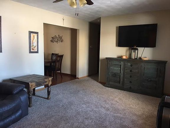 Very nice ranch style with has living room and family room, 3 bedrooms and 2 baths. New A/C unit and water heater, new carpet /flooring throughout the house, new windows in all rooms except bedrooms and laundry room, new exterior doors and screen door. All appliances stay including water softener. Breezeway attaches a 2 car garage. Fenced in back yard.