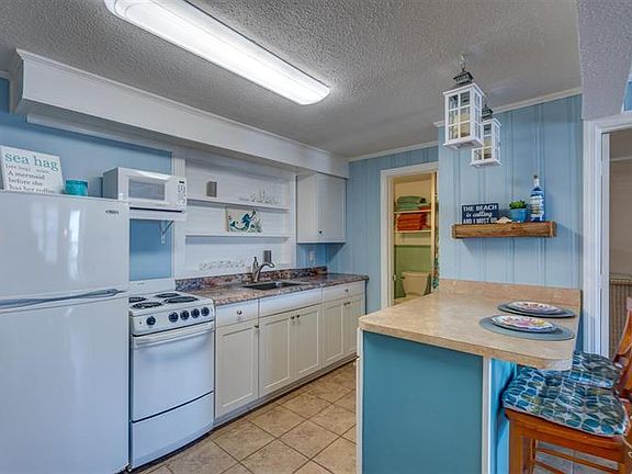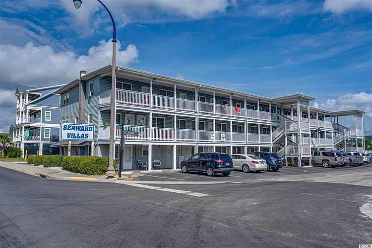 Very charming, 2 bedroom 2 bath condo directly across the street from the beach in the heart of Cherry Grove. Sold furnished, this cute unit has everything you need for the perfect beach getaway home. It has been recently updated with an added second bath and laundry closet, complete with washer and dryer hookups! Other updates include new paint, new kitchen cabinets, new kitchen countertops, a new stove, and shiplap in the living area. Both bedrooms have an en-suite bath and ceiling fans. The air heating unit was replaced in August of 2018 as well. Enjoy quiet evenings listening to the ocean on the front or back porch. Seaward Villas has a community pool that has been updated with a new paver surface and outdoor shower. Also, there is a laundry room on site for owners only to use. Located just across the street from the beach and walking distance to Boulineau's and area restaurants and attractions. This unit won't last long! All measurements are approximate. Buyer and buyers agent responsible for verification.