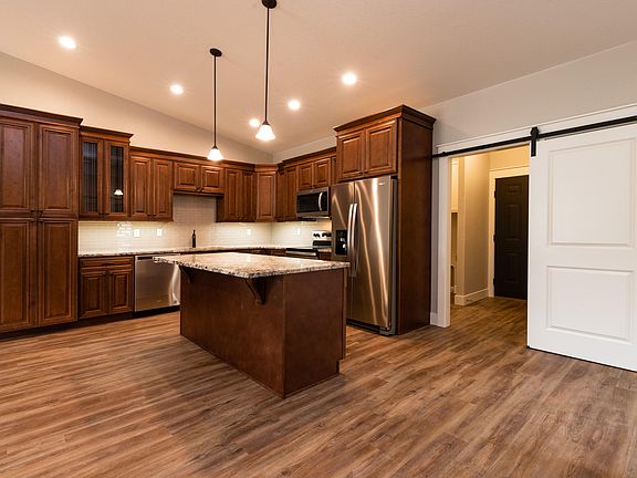 Built by J.E. Homes' reputation is to build with care and attention to detail and this home is no exception. This luxurious slab on grade ranch style twin home with a 3 stall heated garage has 2 bedrooms and 2 bathrooms. Upon entering you notice the open kitchen with vaulted ceilings, quartz counter tops, center island, tile back splash, and under cabinet lighting. The kitchen opens up to the living room which leads to the sliding glass doors out to the back covered concrete patio. The home offers a full bathroom, 2 bedrooms which include a master suite with double sinks, tile shower, heated tile floors, and walk in closet. The three stall garage is fully insulated, h/c water, gas heater, and a floor drain. The yard will be hydro-seeded, underground sprinklers, and concrete edging. Additional features include stone front, Pella windows, pre-wired for surround sound and security system by Green Light Systems.