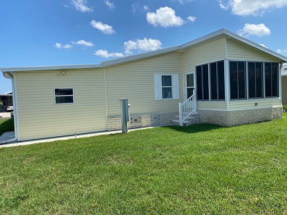 WOW! This immaculate and very well maintained 2055 sq ft home is located in Sun Key Village, an age-restricted 55+ gated mobile home community that is considered to be among Florida's best communities. This luxury five-star gated community offers a beautiful pool, community activities, library, fitness equipment/room, community lake with fishing, and much more! Upon entering this home you will be welcomed by the bright open concept. Gorgeous wood laminate flooring, tile, and overhead ceiling fans throughout. The kitchen is beautiful with natural wood-colored cabinets and white appliances (new 2022) There is a nice two-level island that is perfect for breakfast, food prep, or entertaining, along with plenty of counter space, cabinets for storage, and a full-sized pantry. The open concept to the kitchen is a nice dining area and off the living room, there are sliders that go to a comfortable Florida room which is the perfect extra living area and room for relaxation. Also open to the kitchen/dining area is a large living room with tons of natural lighting from several large windows with custom blinds. There is a perfectly sized laundry room with wash/dryer, cabinets and space for folding. The beautiful master bedroom has an en-suite bath with dual sinks, seated make-up area, walk in shower and a large walk-in closet. Beautiful Florida room located off the master suite. (There is also another Florida room located in the front of the home) The guest room is bright and cheery with an overhead ceiling fan, good sized closet and another full guest bath nearby. The oversized den is entered through French doors and could also be used as a third bedroom, office or craft room. The double carport fits two cars tandem style and has an oversized storage shed attached. Plenty of room for a workshop and storage. AC is new in 2019. All appliances are new in 2021 and 2022. The lot rent is $830 (plus pass-thru) and includes cable and all park amenities. Close to beaches, restaurants, and shopping areas making it convenient for seasonal and full-time residents. Truly a beautiful home and a must-see. All listing information is deemed reliable but not guaranteed and should be independently verified through personal inspection by appropriate professionals. Integrity Mobile Home Sales cannot guarantee or warrant the accuracy of this information, measurements, or condition of any property. Measurements are approximate. Lot rent is subject to change.