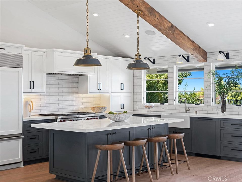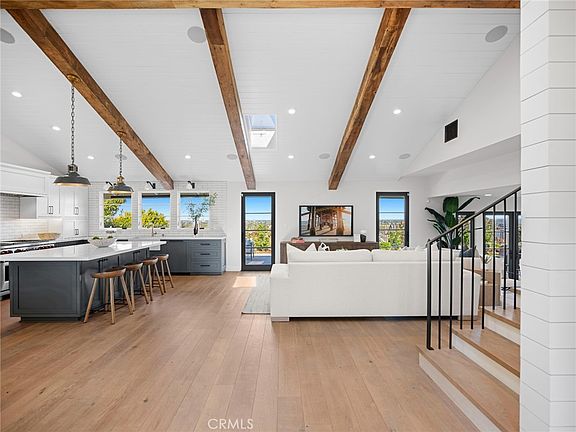 Modern living awaits in this meticulously updated residence at the top of the Eastbluff neighborhood in Newport Beach. Beautifully envisioned by Brooke Wagner Design, this delightful 4-bedroom, 3.5-bath haven is crafted to impress with exposed, beamed ceilings, shiplap accents, and wide-plank flooring gracing the open-concept living areas. Expansive windows frame breathtaking city lights, mountain views, and tantalizing peeks of the ocean and Catalina. The gorgeous chef’s kitchen showcases a professional-grade range, handsome cabinetry, sleek quartz countertops, and an oversized multi-seater island. Among the stylish bedrooms, the upper-level primary suite tops the list with a walk-in closet and an exquisitely tiled ensuite with a frameless shower and spa-like soaking tub. French doors open to a sun-kissed patio ideal for unwinding or holding weekend celebrations amidst the scenic backyard with firepit. In addition, you’ll find yourself conveniently across the street from the community park, in-ceiling surround sound, wired for surveillance, 3-car garage, and new building systems. Come for a tour today.