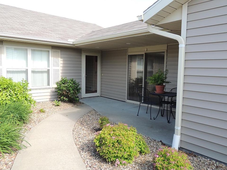 This half duplex has a beautiful lawn with mature trees and a deck. Inside you will find 2 lg bedrooms with 2 full baths and a great kitchen featuring hickory cabinets with pull out shelves and a pantry. Kitchen appliances are included. Other nice features are cove moldings, large walk-in shower, brand new carpet, a tall crawl space and much good storage. It is in excellent move-in condition!!