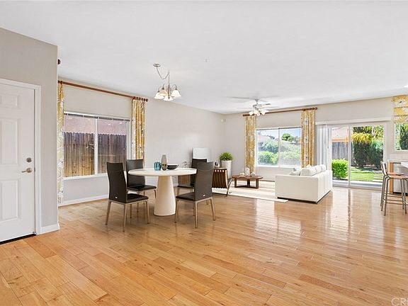 In a pristine neighborhood, this turn-key 3 bedroom, 2 bath home, with meticulously manicured landscaping, awaits you. With a fresh, open concept, the kitchen opens to living and dining areas, to allow for easy entertaining. Kitchen featuring stainless appliances, looks out to the expansive backyard, lush with mature rose bushes. Two separate pantries, in the kitchen and laundry rooms are perfect for stocking up on groceries and sundries. Full laundry room with built-in cabinetry opens to direct-access 2-car garage. Spacious master suite, with enormous walk-in closet is tucked away from the living/kitchen areas, while the 2 remaining bedrooms share the full guest bath toward the front of the house. Wood flooring throughout living areas is balanced with carpet in the bedrooms. This well-maintained home is wired for alarm system, and has timed sprinkler sytem in from and backyards. Fast, easy access to the 99 Fwy provides a quick commute to work, and then coming home to quiet tranquility.