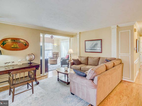 Say Yes! Elegant and beautifully upgraded FIRST FLOOR end-unit condo in Holiday Village East, a highly sought after 55+ community. Gracious dining and living area offer opportunities for multiple furniture layouts and feature hardwood floors, bespoke crown moldings, wainscoting and trim, and a soft neutral paint palette . The kitchen features stainless steel appliances, including a downdraft GAS RANGE for the gourmet home chef! Lovely and spacious primary bedroom with newer carpet, an en suite bath with upgraded shower doors, and a walk in closet. Second bedroom is a good size. Main bath is lovely. Cozy "snug" sun room with views of the pond has sliding glass doors to a cute outdoor patio. Cheerful and bright laundry room is so convenient, washer and dryer included. Outdoor seating area, attached storage/utility room. This unit is a rare find. Absolutely move-in ready. Hurry!