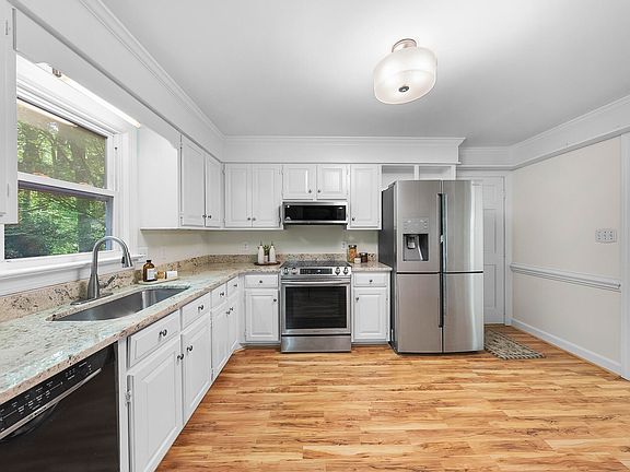Looking for a beautifully updated home in a serene Garner setting with a truly special yard? This is it! Step inside and be greeted by brand new LVP flooring flowing seamlessly throughout the main level, leading you to a stunning kitchen boasting brand new granite countertops and sparkling stainless steel appliances - a joy for everyday living and entertaining! The fresh, neutral interior paint creates a bright and inviting atmosphere. But the real showstopper is the gorgeous, arboretum-style yard complete with its own walking trails - your private oasis for nature lovers! Imagine relaxing and enjoying the outdoors on the large screened-in porch. You'll love being right down the street from the fantastic White Deer Park and the ever-popular Holl & Stone Farms, which has everything from a market to ice cream and animals!