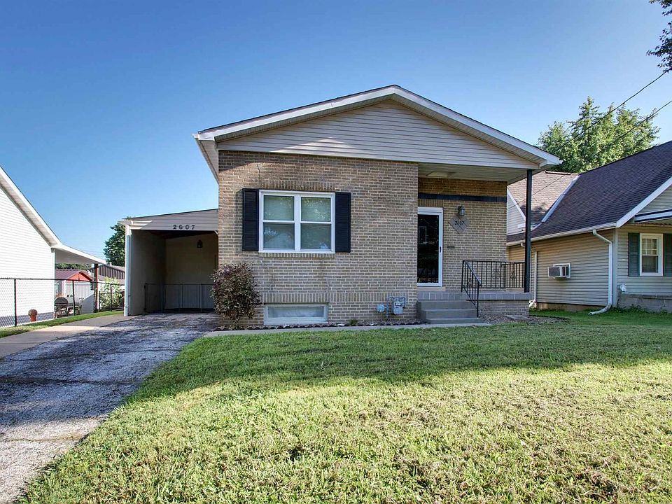 Beautiful 2 bedroom, 2 full bath brick home with lots of outdoor storage. Very nice newer 22 x 28 ft 2 car garage with a metal roof, a carport with a 10 x 14 ft storage building behind it. New light fixtures, carpet, paint, wi-fi thermostat, disposal, and added dishwasher. 10 x 12 ft covered patio. Finished basement with concrete flooring that includes a family room, den, and full bathroom for additional space. Fenced-in backyard. An abundance of storage in all the nooks and crannies. Come check out this fantastic home!