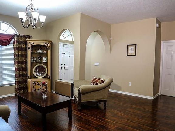 Located on 1+ acre of property, this spacious 5 Bed + 3 Bath + Sunroom home has plenty of room for the family and pets. Enjoy the peace and quiet outside, and a terrific first impression of the beautiful wood floors as you enter through the foyer and into the living and dining area. The Kitchen is open and features a spacious breakfast bar and eat-in area, all overlooking the Family Room with sliders. The bedrooms are on a tri-split for homeowner and guest privacy with highlights of the Master Suite including a bay window and walk-in closet, and bath with double sinks, soaking tub and walk-in shower. Enjoy the outdoor views and Koi pond from the Sunroom, Large Patio or Gazebo. Extra features include a large storage shed with electric, outdoor fire pit area, dog run and A/C unit in garage for extra comfort when working on those handyman projects. Thank you for taking the time to see this home in person.