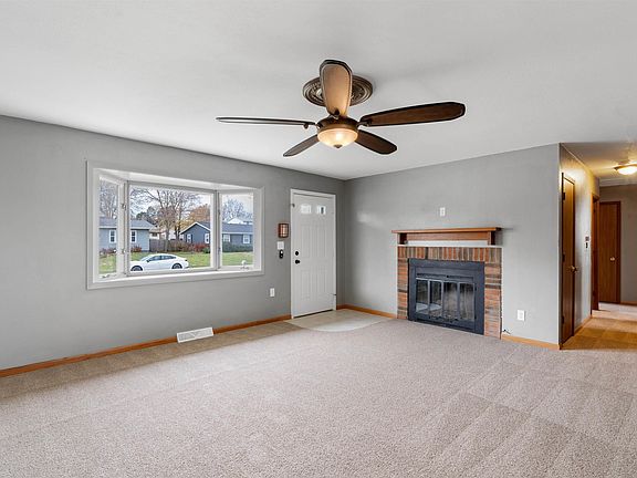 Welcome to this charming and AFFORDABLE 4 bedroom, 2 full bath ranch style home in Bettendorf! As you enter, you're greeted by a spacious living room boasting a large picture window that floods the space with natural light. The cozy gas fireplace adds warmth and ambiance, creating an ideal spot to relax or entertain guests. Brand new carpeting throughout the main level, including the living room and bedrooms, adds a fresh and inviting feel to the space. The kitchen is a bright and airy focal point with its vaulted ceiling and a captivating window accent wall that bathes the room in sunlight. Abundant cabinetry, a buffet area, and built-ins provide ample storage and functionality, making this kitchen a delight for any home cook. On the main floor, you'll find three comfortable bedrooms, all featuring the newly installed carpeting, as well as a full bath. The basement is a versatile space offering a welcoming rec room for gatherings, a fourth non-conforming bedroom or office space, and an additional full bath. The basement has also been waterproofed, and the laundry/storage area is plumbed for another bathroom. Head outside to the fully fenced backyard, complete with a deck and patio. This home comes with several updates including freshly painted walls, new trim, newer furnace, water heater and vinyl siding, and its been deep cleaned! Don't miss this opportunity to make it your own! Schedule your showing today!