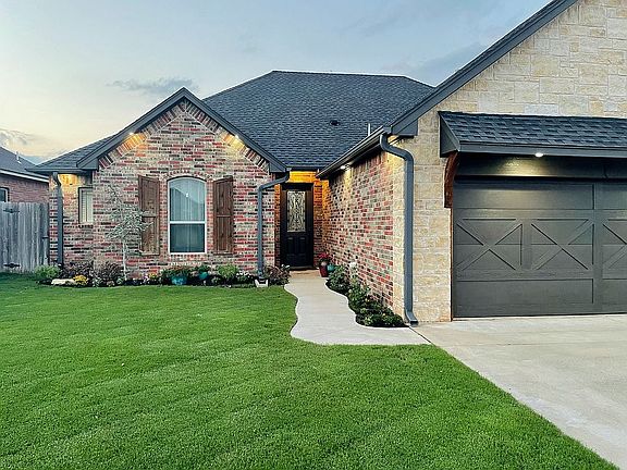 Soft, neutral pallet of grays throughout complimented with hard wood flooring in living room, entryway, office/4th bedroom, and kitchen. Large master bathroom and bedroom. Spacious master closet that doubles as a safe room. Newly installed custom blinds in all windows. Natural gas fireplace. New refrigerator is included. Exterior of house has guttering and French drains recently installed. Please contact me with any questions Bryce - 580-542-6618