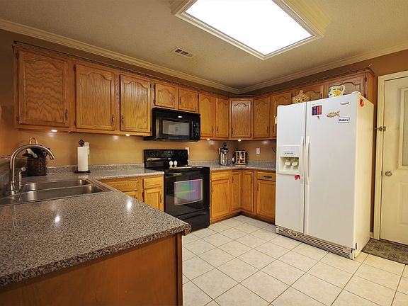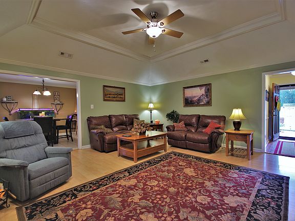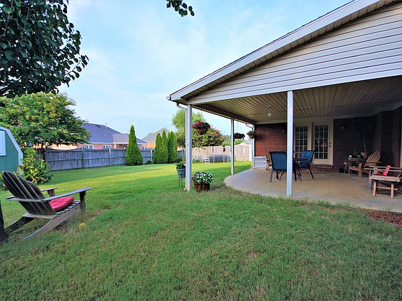 Come home to this lovely 3 bedroom, 2 bath home with upgraded trim and beautiful tray ceilings. Enjoy the outdoors as you sip your morning coffee on your covered porch, then let the kids play in the spacious yard, ideal for game-day cookouts. Celebrate those cool nights sitting by the natural gas fireplace in the living room. New furnace in 2008. New 50 gallon gas water heater. Comes with a smart thermostat and garage door opener. 8 camera security system. New fixtures, ceiling fans, and fresh paint. New HVAC system and 30-year architectural roof.