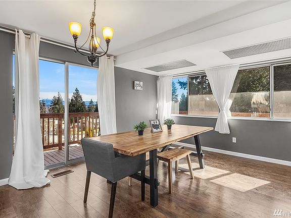 Wake up to stunning sunrises over the Snohomish River and Cascade Mountain Range from this beautiful Valley View split level home. Wrap around deck, open layout and wood fireplace caters to the beautiful views. Huge rec. room and entertainment area downstairs leads out to the big back yard and patio. Updated flooring, fresh paint, heat pump and beautiful landscaping complete this 4 bed 3 bath home. Wonderful location just minutes from shopping malls, restaurants, Paine Field and the freeway.