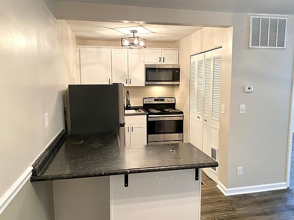 Pictures represent similar apartment. Not all finishes will be identical. First floor and second floor currently available. Be the first to live in this corner apartment currently under renovation! This 1BR 1BA corner apartment is on a culdesac surrounded by mature oak trees. The new kitchen has soft close cabinets, black granite-like countertops, and stainless steel appliances and features an open floor plan with peninsula bar. All new flooring in the LR, kitchen and Bedroom. Located In Clifton Heights/Lower Brownsboro Rd with easy access to downtown, highways, Kroger, a local golf course, popular Frankfort Ave restaurants, and the VA Hospital. This apartment has an en suite full bathroom with tub and shower with oversized shower head. Situated on the corner with windows all around for great natural lighting, security, privacy, and quiet enjoyment. Keypad entry with private codes for extra security. Coin-operated or phone app laundry room is in the complex which notifies you when machines are available and when your laundry is done. We also have a no smoking policy. Monthly water fee of $25. Security deposit = $859 due after early January walk through.. $40 application fee. $200 non-refundable pet deposit per pet. $25/mo rent per pet. We are seeking 3.5x income, 600+ credit score, and clean background check. APPLICATIONS: Taking applications now and offering early walk throughs on a case by case basis. 2 apartments coming available.