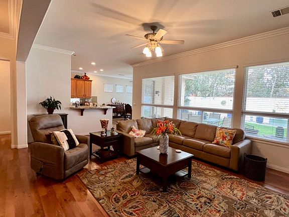 Great home in the Greens on a quiet street. The home offers 2 bedrooms and an office and an open floor plan with the kitchen over looking the large living room and dining area. This home features nice laminate wood flooring throughout most of the home including the office and berber carpet in the 2 bedrooms. You'll love the split wing floor plan, Crown molding throughout, and all the natural light from the large windows looking out to the back yard. Kitchen offers granite counter tops and stainless steel appliances. This home is truly amazing and ready for its new owners.