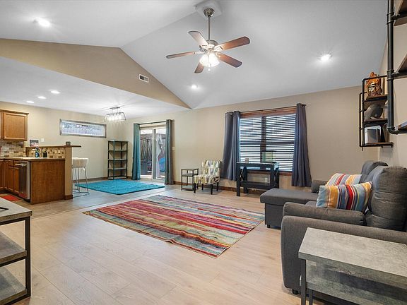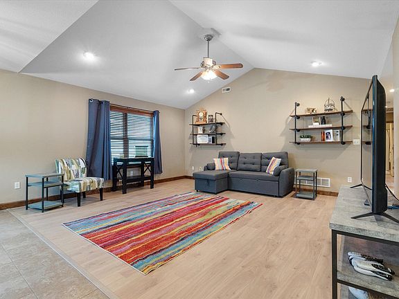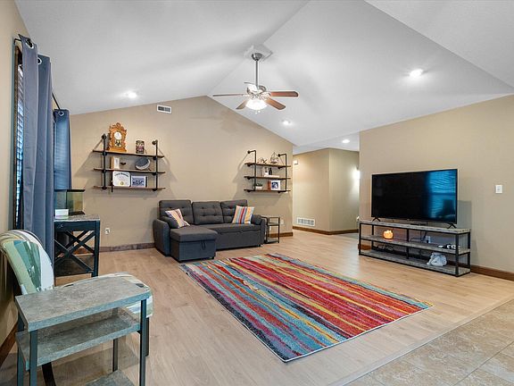 Fenced backyardBrick accentsVaulted ceilingGreat landscapingOversized patioNew laminate flooring