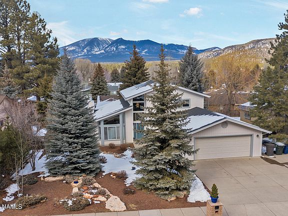 Custom home with views of San Francisco Peaks. 4 BR home with an additional room that can be used for a fifth bedroom or office space. 3 full baths and gorgeous views of the San Francisco peaks. This home has only had 2 owners and has been meticulously maintained. Current owners have installed a brand new roof in February of 2021. All the bedrooms have custom built in drawers and bathrooms have lots of storage. Laundry room has a sink and full size cabinets for extra storage. Oversize 2 car garage and flat, south facing driveway. Yard has mature landscaping, back deck has gorgeous views. Prime location close to Mt, Elden trails and FUTS trail system. Ride your bike to town or jump in your car to Arizona Snowbowl in 20 minutes. Unique opportunity. No HOA. See this home today