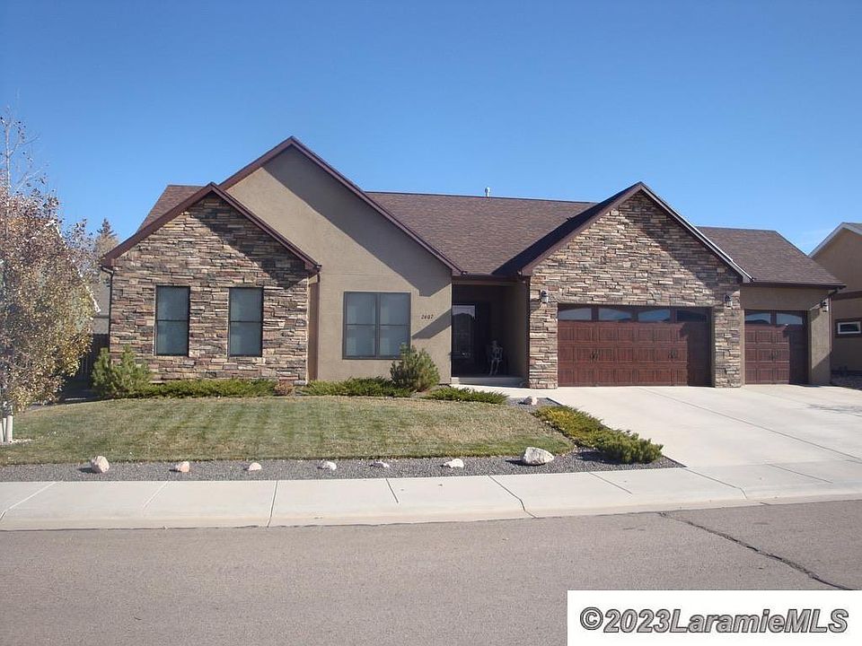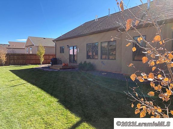 Custom-built open floor plan with oak hardwood floors, granite countertops and hardwood trim and doors throughout the home. The kitchen features custom hickory cabinetry, stainless steel appliances and a walk-in pantry. Front bedrooms have beautiful views of the Snowies and home has good build quality. Fully landscaped front and back yards offer fabulous views. This amazing home is less than two miles from the University of Wyoming and two and a half miles from downtown Laramie.,Enjoy fantastic views of the mountains in a very quiet neighborhood with a modern open floor plan, oak hardwood floors and porcelain tile throughout in this 2015 custom-built home. The bright and welcoming great room showcases a vaulted ceiling and natural gas fireplace. The bedrooms all boast nine-foot-tall ceilings and two have Snowy Range Mountain views. Granite countertops and hardwood trim and doors are throughout the home. The kitchen features custom hickory cabinetry by Irving’s Hardwood, stainless steel appliances - including Bosch Dishwasher and a nearly new Kitchen Aid Gas Range, and a tall walk-in pantry. This home features double-hung Pella windows and sliding door for tons of natural light, a 92% efficient Bryant Gas Furnace, Delta faucets, additional hookup for either an electric or dual fuel range, wired ethernet and cable in each room, and sprinkler system. A well-maintained and fully landscaped front and fenced backyards offers views of Happy Jack. This amazing home is less than two miles from the University of Wyoming and two and a half miles from downtown Laramie. Make an appointment to see this gem today!
