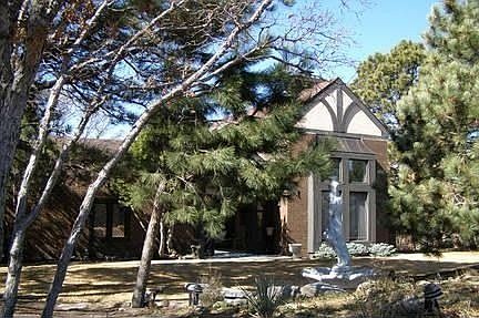 This one of a kind beauty sits at the top of the bluffs on nearly 3/4 of an acre with tons of privacy, gorgeous mountain views, and backs to open space and miles of walking trails that make up part of the Austin Bluffs Open Space. Don't be fooled by the mountain feel though, because this home is conveniently located right in the middle of town allowing you to get almost anywhere in just minutes. This beautiful English Tudor home welcomes you with a large covered front porch and a serene water feature. The meticulously maintained front and backyards boast large pines and scrub oak that provide a secluded feel. A very unique floor plan adds to the wonderful charm of this home. The home leads into a large open Great Room with a pass through fireplace. Head up the stairs to the large circular Library overlooking the Great Room and curl up in one of the unique sitting areas. Truly the signature of this one of a kind home! The updated kitchen leads to a deck that overlooks the open space behind and massive Pikes Peak views. THIS HOME IS TRULY A ONE OF A KIND FIND. DON'T MISS OUT!!!