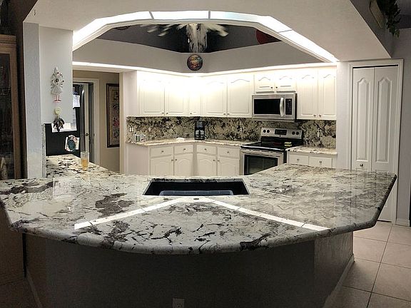 One owner custom-built (2004) waterfront home located on a quiet cul-de-sac with 2,183 sq ft under air, total 3,038 sq ft. This well-maintained property features an oversized garage with patio behind, eat-in kitchen, dining room, living room, 2.5 baths, three bedrooms, including a master bedroom suite with two spacious walk-in closets and has its own 20-seer mini-split a/c for your comfort. French doors open to the enclosed pool area - with its own shower. Pool overlooks the dock, including a 6,000 lb boat-lift, giving you access to the Gulf of Mexico! Home offers a newer water heater with built-in heat pump, updated efficient pool pump, pool heater & Hayward pool vacuum. This meticulously maintained home has beautiful views and fresh paint throughout!