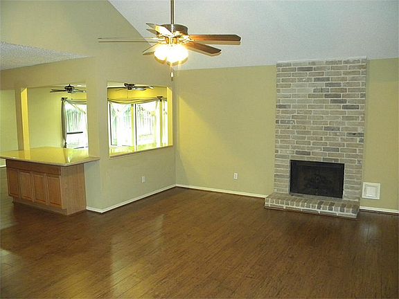 Chimneystone at its best, the home was added onto in 1995 and updates done in 2015. Open split floor plan with large kitchen, Den and living area, plenty of kitchen cabinets and counter space, under cabinet lighting. Dry bar or computer work area off the Den with half bath. Vaulted ceiling in living room, Plenty of ceiling fans, recessed lighting and natural light from the huge windows that offers a great view of the large back yard with a covered patio.