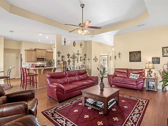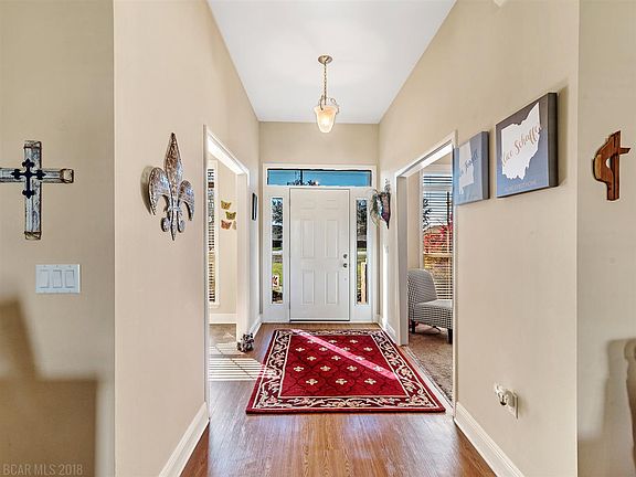 Lovely 4 bedroom / 2 bath home in Foley with huge fenced back yard - nearly 3/4 acre. Close to everything - shopping, schools, YMCA, restaurants and quick access to beaches. Home offers open kitchen with stainless appliances, two pantries, eat-in area and breakfast bar. Separate dining room and bonus room off the foyer that could be a sitting room, office or library. Split floor plan with large Master w/ french doors to the back yard and Master bath with large handicap shower! High ceilings w/Trey ceilings in Great Room and Master, inside Laundry, Water filtration system and double side garage. 4th bedroom has door to the back yard and could be sun room, craft room or Children's play room. This home has it all - Must see this one!