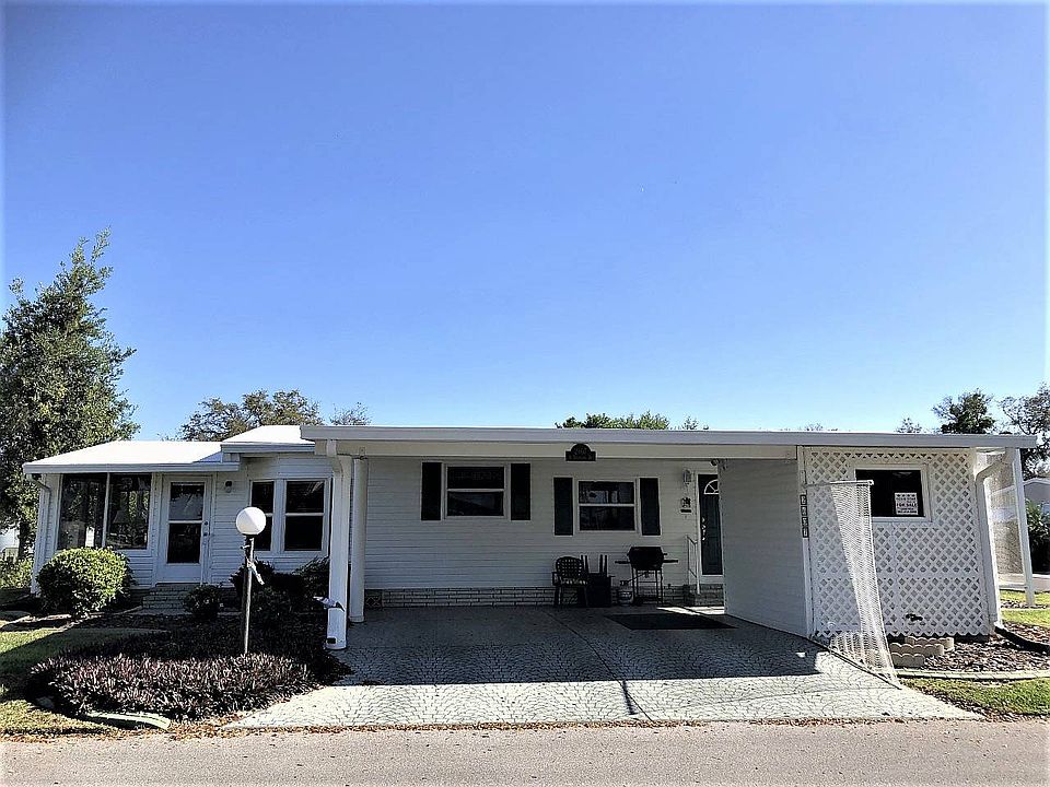 2BR 2BA 1300 sq ft home. Fully furnished. Immaculately kept. Extra large closets, New Refrigerator, New AC in Sun Room, Brand new washer and dryer, New Faucets, Extra large bump out closet in guest bedroom, Double covered carport. Best views in the park across from the clubhouse and lake. large corner lot expertly landscaped. New oversized AC in 2016. Rubber roof. Loads of cabinets and built ins.