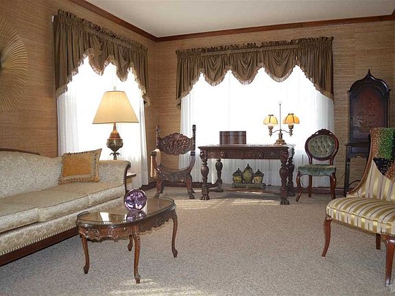 This is a home of rare & beautiful distinction. Offers all the stunning original features of it's time! Crown molding, chair rail, custom trim, built-ins, original wood, slat & marble flooring, mahogany & cherry wood, new carpet...too much to mention! Brick & stucco exterior, double lot, fenced yard, shed, flower beds, patio, largest holly tree in the area! Beautiful formal dining room. Living room w/fireplace. Home is very airy & bright w/plenty of large windows throughout! Kitchen w/pantry, dumb waiter, cherry cabinets w/pull out shelves, newer fridge, dishwasher, disposal, washer & dryer. Family room w/green slate floor, built-in cabinets w/marble top & mahogany walls! Cozy alcove w/built-ins. Upstairs is a 2nd kitchen area w/possibility of a duplex. Spacious master bedroom & 3 others 7 3 full baths. Attic w/cedar closet. Large basement w/shelving that stays & a concrete bomb shelter. 2 car detached garage. Brick patio. Yu will not lack in storage space!