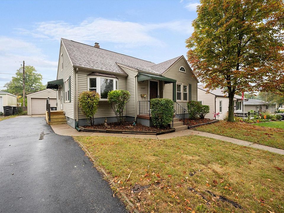 New kitchen counters, cabinets, LVP flooring in kitchen and dining room Living room has hardwood floors w new overhead LED lights. There are 2 main floor bedrooms, and a large upper primary bedroom. Partially finished basement with large open family room, adjacent laundry area, and storage area. 1 car detached garage, fenced yard. All appliances included (fridge, stove, microwave, washer, dryer). No pets, No section 8. Tenant pays utilities (gas, electric, water, and mows grass. Off street parking, and garage available. No smoking, No pets. Minimum 12 month lease