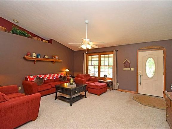 Home Sweet Home! Spacious 3 bdrm, 2 ba ranch situated on 3+ acres. Cathedral ceilings, lg eat in kitchen, dining rm w/walkout to nice deck, master features a whirlpool tub & separate shower. 2 car attached garage. Beautiful landscaping. Move in ready
