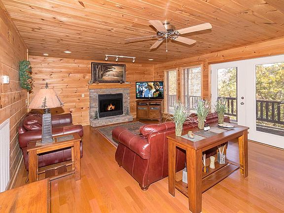 Never on rental! And this home offers so much... 3BR/3BA log sided home Plus huge loft area as well as second downstairs seating area with space to fit a pool table. Located close to pigeon forge in the Gated Shagbark community with beautiful views and privacy! Enjoy mountain sunrises from the many covered decks or Gazebo that was built to hold a Hot-tub. Designed to be a permenant home with an open floor plan on the main level and handicapped accessible on the lower level with roll in shower and 36in wide door. This beautiful home boasts 3 levels, each with a master suite, 2 whirlpool tubs, and tileshowers. Boasting hardwood floors, cathedral ceilings, lots of large windows for plenty of natural lighting, spacious loft with excellent views and room for a bed and game area or just extra sleeping, 2 gas log fireplaces, hickory cabinets, and tongue and groove throughout. Includes appliances, An actual laundry room with front load Washer and Dryer as well as utility sink. The home has been very well taken care of. The Shagbark community has monitored security, along with a clubhouse, pool, and tennis courts. It has storage and closets. There is a built in office in the basement that can easially be turned into a wet bar. Make this your Home in the smokies, Second home or a great upscale rental investment. The home speaks for itself. Perfect Rent it till you retire cabin... newer zoned HVAC as well 650 ft well so 480 Gal of water storage in the well. Don't overlook this one it is a must see.