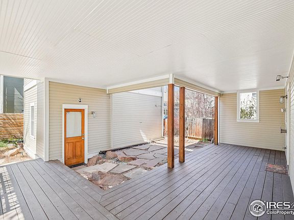 Beautiful home in the award-winning Iris Hollow community, offering a bright, open floor plan and stylish modern finishes. New paint and lighting throughout the home. The spacious kitchen features granite countertops, ample cabinetry, and a seamless flow into the living and dining areas. Cathedral ceilings in the living room, and plantation shutters throughout, add elegance and warmth. The home is filled with natural light, highlighting travertine and glass tile accents in the bathrooms, entryway, and around the fireplace. The primary suite boasts a large south-facing deck, perfect for soaking up the sun and enjoying the views. The finished basement offers bamboo flooring, a large bedroom, sleek euro-style bathroom, and a versatile recreation room. Step outside to the private detached study above the garage-a 240 sq. ft. finished space, ideal for a home office, creative studio, or guest retreat. A lovely covered courtyard area with wood decking is a great place to entertain guests, and it connects the home to the garage. Conveniently located just a block from Elmer's Two Mile Park and the Goose Creek Greenway bike path as well as shopping, dining, coffee shops, a fitness center and more! Solar photovoltaic system ensures energy and comfort. Don't miss this unique and thoughtfully designed home in a prime, central Boulder location, with a walk score of 88!