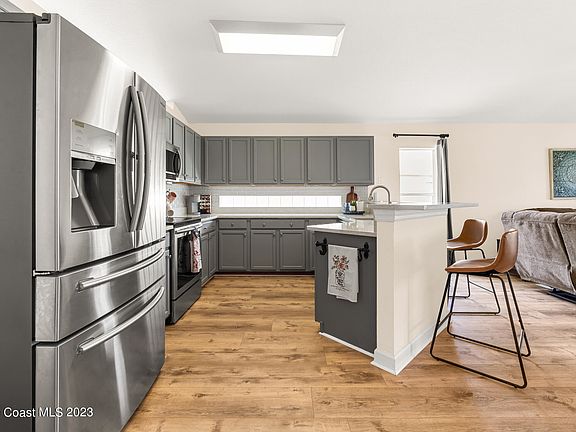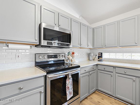 Lakefront, nicely remodeled home in the center of West Melbourne. Featuring HUGE FORMAL LIVING ROOM & DINING ROOM, family room and remodeled kitchen w/quartz countertops, subway tile backsplash and stainless-steel appliances. Breakfast bar and breakfast nook nestled cozily within the family room area that lead to the patio. Large master suite with massive walk-in closet, EXTRA closet nook, garden tub, double sinks and large walk-in shower. This property has loads of natural sunlight, a kitchen pantry and window treatments. Durable laminate flooring throughout with no carpeting anywhere. Roomy floorplan and lovely screened patio overlooking the lake. 2017 Roof! This property is located near churches, Walmart, Target and I95 making it a short drive to beach and to Orlando airport.