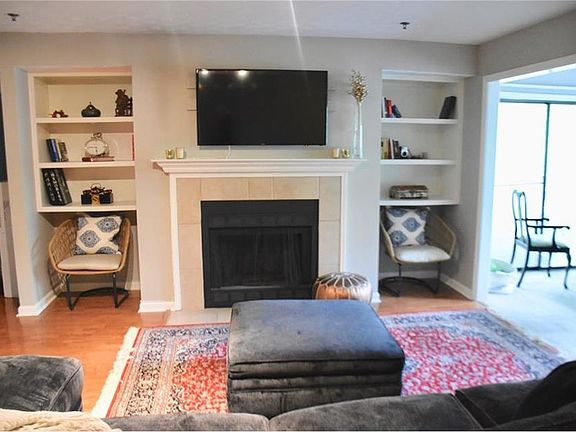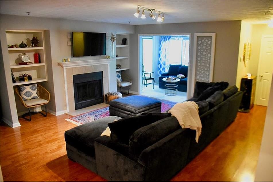 Gated Condo Community in Vinings /Smyrna with Atlanta address!. Property is centrally located within minutes to downtown Atlanta, The Braves stadium, Cumberland mall, with the airport about 20mins to the south. It is walking distance to shops, restaurants, trails, groceries and more. Move in ready with beautiful hardwood floors in the main living area, it has new carpet, fresh paint throughout and the deck is only a year old. Everything you see stays including the washer/dryer and the SS appliances. Kitchen is open to the family room, which includes a fireplace. Custom built-in bookshelves in family room. Absolutely gorgeous sunroom with incredible year-round wooded view, that can be used as an office, playroom, an extension of the living room, etc. One bedroom has sliding window out to the new private deck with wooded views. Each room has a walk-in closet with its closet system. There are two more separate closets great for storage. The HOA includes pool, tennis, fitness center, water, trash, pest control, landscaping, exterior of the building maintenance and the reserve funds. Great as a rental investment as well. Do not miss out on this opportunity and schedule your viewing right away!