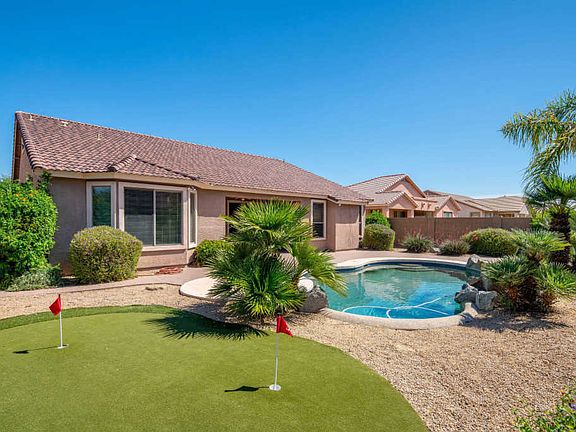 The interior of this spectacular Richmond American Home is immaculate and features a spacious living area. 3 bedrooms, 2 baths and formal dining room; perfect for your family gatherings, or just relaxing! Add in the endless designer touches throughout and you'll agree that this home is a special one! You'll enjoy cooking in your gourmet kitchen featuring gorgeous rich colored granite counters, large island, upgraded cabinets and appliances. The resort like yard with pool, and putting green is perfect for endless entertaining.