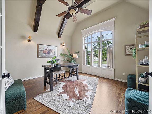 Back on the Market at NO FAULT OF SELLER! This stunning home is situated in a peaceful cul-de-sac in South Broken Arrow, just a short distance from the neighborhood park and a few blocks from the neighborhood pool. The thoughtful split floor plan ensures privacy for everyone, with the primary suite and two additional bedrooms on the main level, and a fourth bedroom with bath, gameroom and hobby room upstairs. Gameroom has a closet, so could be a large additional bedroom if desired. The large living room features a cross-beamed ceiling and a fireplace flanked by built-ins, making it ideal for daily living or entertaining. It opens to a bright kitchen with a large pantry. Formal dining is conveniently located across the entry hall from the kitchen. The incredible outdoor oasis features a fireplace and outdoor kitchen. A perfect place to cook a meal or enjoy your morning coffee… all while appreciating the turfed backyard that always looks perfect without needing to be mowed. Recent updates include a brand-new roof, refinished hardwood floors, and fresh paint inside and out. The home is wired for central vacuum, offers ample storage space, and includes a three-car garage. It is also conveniently close to shopping, dining, and access to the turnpike. Just minutes from the new shopping and dining options on Aspen and the Creek Turnpike to the south and all the shopping and dining on Memorial to the west.