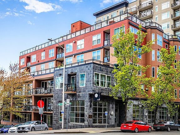 Motivated Seller - Welcome to The Vine in the heart of Belltown, just steps from Pike Place Market, the waterfront, Space Needle, premier shopping, and dining. This spacious one-bedroom, one-bath home offers a generous living area with vinyl plank flooring, a carpeted bedroom, and a walk-in closet. Partial western Puget Sound views can be enjoyed from both the bedroom and private balcony. The kitchen features maple cabinetry and granite countertops, while a cozy gas fireplace anchors the living space. Includes one garage parking space, additional garage storage, and a large 4x10 laundry/utility room. Building amenities include 24/7 concierge, club room, fitness center, car wash, guest suite, and a rooftop deck with sweeping city and Sound views. **SELLER OFFERING 6 months OF HOA DUES CREDIT AT CLOSING**