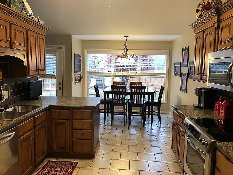 Brick Ranch with basement in Windemere, built by John Peninger, 2702sqft with 3-4 bedrooms, 3 baths, eat-in kitchen, formal dining room, great room with fireplace, foyer with vaulted entry, laundry. Eat-in Kitchen has beautiful cabinetry, tiled flooring, breakfast bar, pantry. Open, split bedroom, floorplan. Owner's suite has full bath with whirlpool tub and standup shower. Open stairway to basement, includes: bar, full bath, rec room, and office or bedroom. Back yard has fencing and shade, nicely landscaped, patio. Garage offers attic storage and sink.