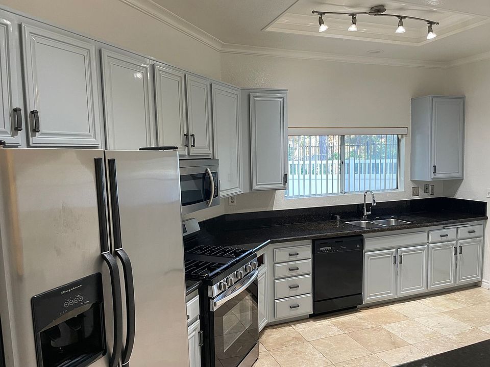 Located in the highly coveted community of Crestline in Laguna Hills. 3 Bedrooms (one on first floor) and 3 baths. Dual suites upstairs, each with their own private bathroom! Marble floor throughout the main living area. High living room ceiling & bright staircase with one bedroom on the main level. This home is on one of largest lots, end-unit, with a beautiful view of the Reservoir. Quiet location with plenty of privacy. Views of trees, hills, and water view give great ambiance. Large backyard, patio. Enclosed with newer fencing Large kitchen with Granite counters and newer appliances. Main floor bedroom which can be used as an office or guest bedroom with attached The Master bedroom is oversized, large dressing area with mirrored wardrobe doors. Cozy fireplace in the living/family room with patio doors to private patio backyard. - also opens to the kitchen for easy outdoor entertaining.Dual en-suite bedrooms upstairs. Master bedroom with large bathroom, closets, and twin sink Inside laundry, 2 car garage. This great community offers 3 private pools, spas and clubhouse. Near Restaurants, shopping area, sports parks, hiking, and biking. So much to offer in this great Laguna Hills location! Offered for lease by LRS Realty & Management Inc. DRE#01820556 Shown by appointment only Credit history and rental references required. Apply on line at LRSRM.com DRE#01887945 LRS Realty & Management Inc is a Fair Housing and Equal Opportunity Housing provider.